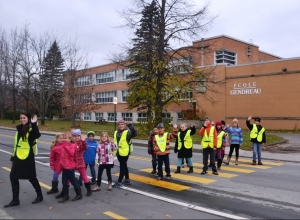 Le Trottibus, l’autobus qui marche, permet à des élèves du primaire de se rendre de la maison à l’école à pied, ...