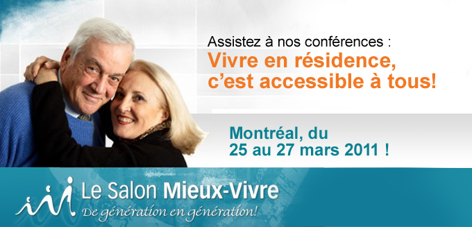 Du 25 au 27 mars prochains, venez rencontrer l’équipe de Vivre en résidence au Salon Mieux-Vivre de génération en génération qui se tiendra au Stade Olympique à Montréal.